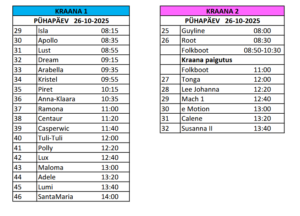 Sügisene jahtide tõstmine toimub nädalavahetusel 25.-26.10.2025, mille AJAKAVA LEIATE SIIT.