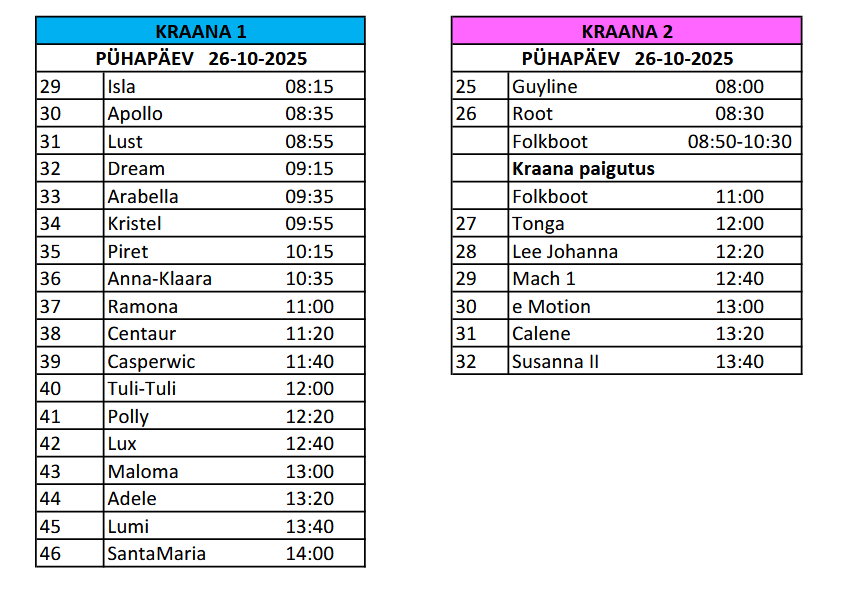 Sügisene jahtide tõstmine toimub nädalavahetusel 25.-26.10.2025, mille AJAKAVA LEIATE SIIT.
