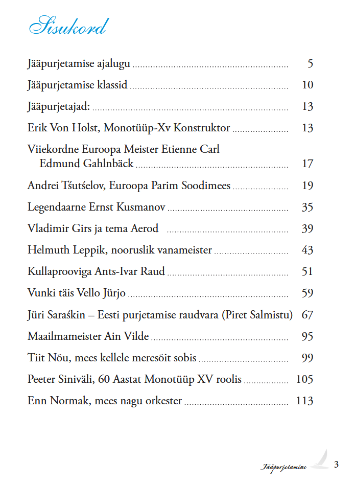 Meie klubi auliige Kalev Vapper on lõpetamas mahukat ja kauaoodatud teost “Jääpurjetamine” – esimest nii põhjalikku ülevaadet Eesti jääpurjetamise ajaloost, arengust ja inimestest. Kaante kujundus ja sisukord annavad aimu, millist lugu raamat jutustama hakkab.